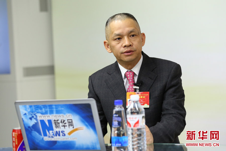 2015年3月13日,全国人大代表、湖南科力远新能源股份有限公司董事长钟发平做客新华会客厅。新华网 李江 摄