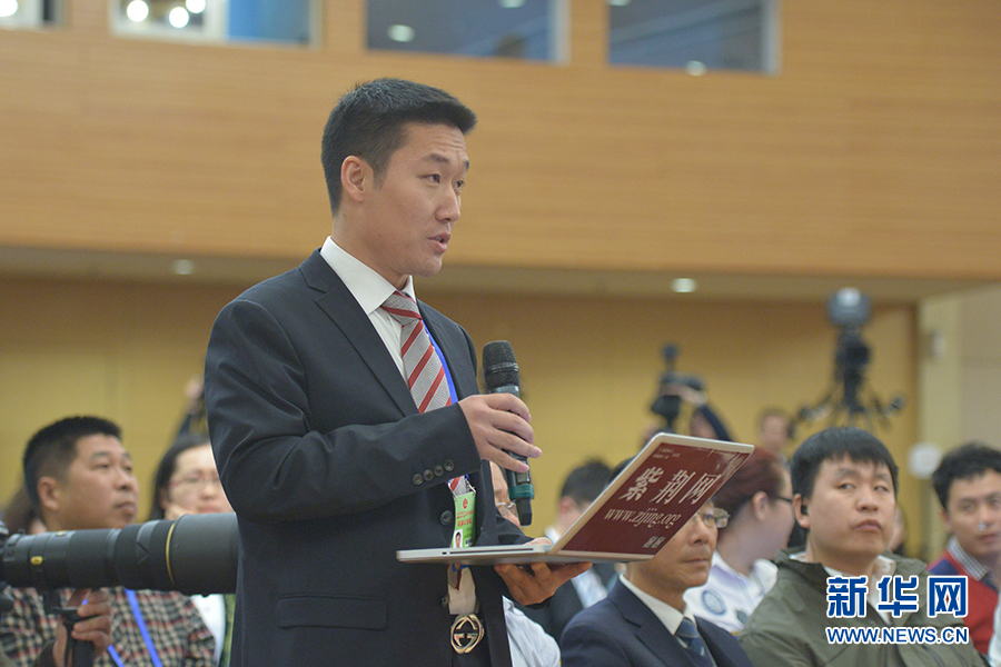 3月13日上午10时,十二届全国人大三次会议新闻中心邀请四川大学校长谢和平、江苏省教育厅厅长沈健、广东省教育厅厅长罗伟其、海南大学校长李建保、贵州大学校长郑强就完善高等教育治理结构的相关问题回答中外记者提问。图为香港紫荆杂志、紫荆网记者提问。新华网/中国政府网 郭小天 摄