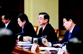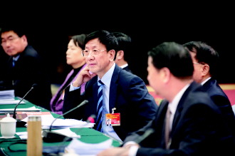 3月12日,最高人民法院院长周强在参加湖南代表团审议两高工作报告会议上,认真倾听代表发言。本报记者 杨晋峰 摄