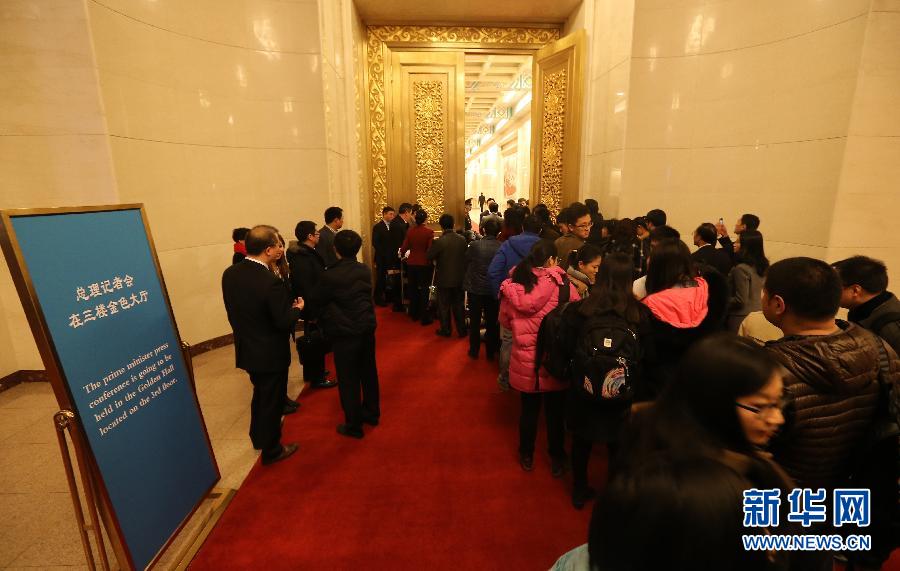 3月15日,国务院总理李克强在北京人民大会堂与中外记者见面,并回答记者提问。这是上午7时左右,记者在金色大厅外排队。 新华社记者 吕迅 摄
