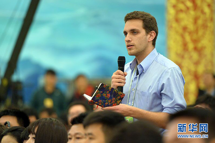 3月15日,国务院总理李克强在人民大会堂三楼金色大厅会见采访十二届全国人大三次会议的中外记者并回答记者提出的问题。图为赫芬顿邮报记者提问。新华网/中国政府网 郭小天 摄