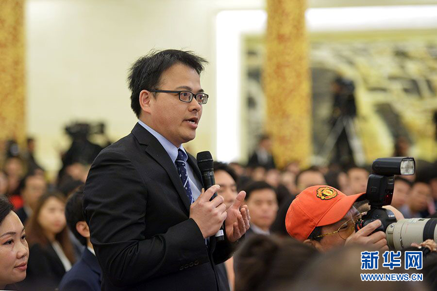 3月15日,国务院总理李克强在人民大会堂三楼金色大厅会见采访十二届全国人大三次会议的中外记者并回答记者提出的问题。图为台湾TVBS记者提问。新华网/中国政府网 郭小天 摄
