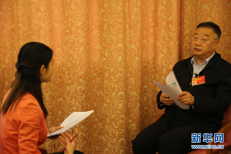 2015年3月15日,全国政协委员、中科院院士、气象学会理事长秦大河做客新华网2015全国两会特别访谈。图为秦大河主持人的问题。