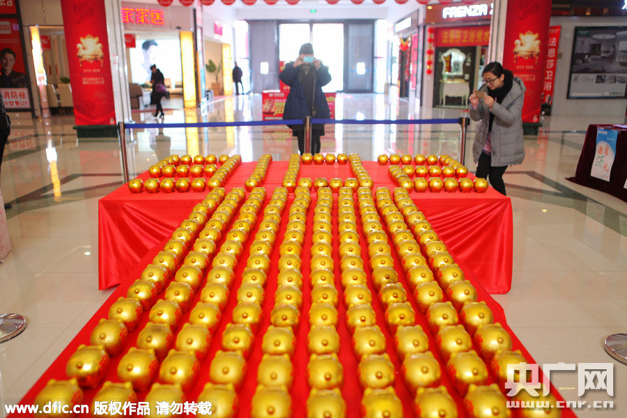 山东滨州一商家688个金猪“摆阵”迎接元旦