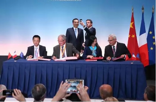 当地时间6月30日,李克强总理访法第一天,中法就在民用核能、航空航天、产能、金融等领域签署几十项协议,其中包括最重要的两份联合声明:《中法政府关于第三方市场合作的联合声明》以及《中法两国深化民用核能合作的联合声明》。当地时间7月2日中午,瓦尔斯与李克强共同出席中法工商峰会闭幕式并致辞,还在见证双方签署22项合作协议期间主动拿起手机与总理自拍。会后,瓦尔斯再次举行午宴款待李克强一行。