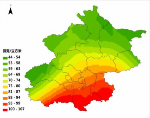 2015年北京市PM2.5空间分布。图片来源:北京市环保局