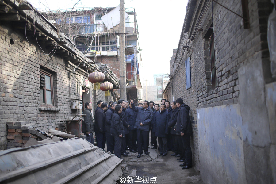 李克强总理4日在太原市小北关棚户区考察。从78岁老太太李反玉家低矮破败的平房出来后,当听说太原还有80多片这样的棚户区,李克强站在狭窄巷道对随行部长动情地说:“你们看见了吧?老百姓还住在这样的环境里,中国要做的事还多着呢!”