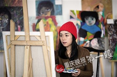 周雅雪在男友装修好的画室里静心作画