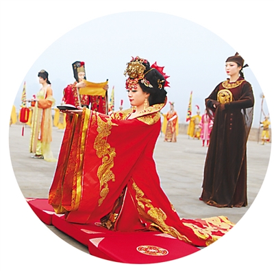 唐代冬至日祭天祀祖、祈盼盛世最为鼎盛。2015年12月22日是中华民族传统文化二十四节气中的冬至,西安作为唐朝的都城,盛大冬至祭天礼重现西安大明宫国家遗址公园含元殿。此次冬至祭天仪式场面恢弘,乐舞齐动,发掘并展现了盛世大唐博大精深的礼仪文化,使中华民族的祭天礼仪得到充分的展示和弘扬。