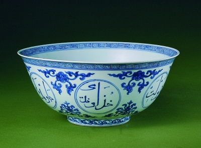 除产自国外的物品外,从陆海两条丝路传入我国的外国工艺与原材料等,也在故宫藏品中有大量体现。比如,元代时,蒙古帝国横跨欧亚大陆,陆上丝绸之路畅通无阻,阿拉伯地区盛产的钴料回回青进入中国,配合景德镇的高岭土,举世瞩目的元青花瓷器就此横空出世;这些色泽明丽的元青花,今天已成为故宫博物院陶瓷藏品中最重要的部分之一。再比如,故宫收藏的明代用波斯文与阿拉伯文作为装饰纹样的官窑青花瓷器,也是中国与丝路沿线各国文化交流相互影响的极好例证。