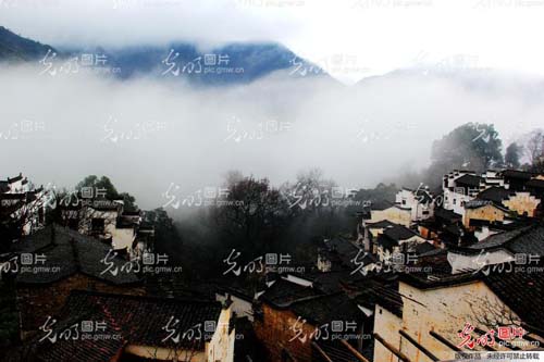 日前,一场大雨过后,江西省婺源县江湾镇篁岭村的层层梯田山峦,云雾缭绕。自然景观与古徽州村落建筑组成一幅美丽的人文画卷,美不胜收。