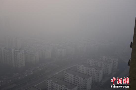 资料图:2016年1月3日,郑州出现严重雾霾天气,空气质量“爆表”,污染指数超过500,属于罕见的严重污染。景物朦胧,空气浑浊,能见度低。 图片来源:视觉中国
