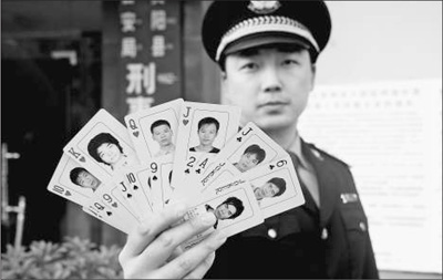 为动员群众参与打击网络犯罪,广西宾阳县公安局日前印制“扑克牌通缉令”免费发放。扑克牌正面印有248名当地网络犯罪嫌疑人的照片及其身份证信息、被通缉原因等;背面附举报电话。对提供有价值线索的群众,警方将按照每条2000元的标准进行奖励。