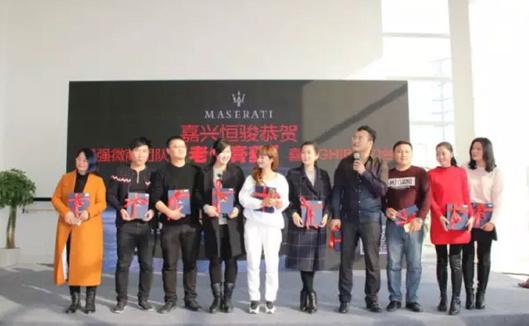 购车老板倪先生亲手将9台玛莎拉蒂的车钥匙交给了他的营销团队成员。