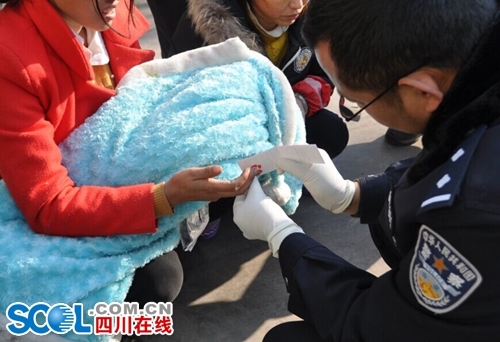 当天上午,犯罪嫌疑人和婴幼儿被运送到凉山州公安局,法医对他们进行了抽血检查,部分婴幼儿被送往西昌救助站,一些婴幼儿被嫌疑人称为自己的孩子,但凉山州公安局负责打拐工作的民警表示,等作了DNA鉴定,确定关系后,再妥善安置。图为法医为犯罪嫌疑人抽血。