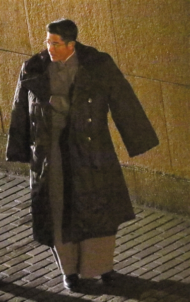 1月13日,上海,郭富城吃完火锅后直奔剧组,一身民国儒生打扮,外披一件羽绒服。