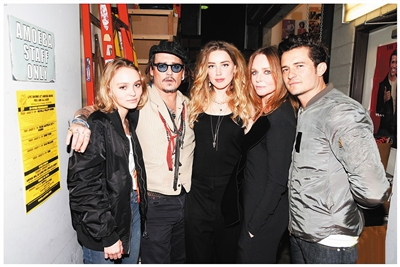 约翰尼·德普带着闺女和娇妻一起去看Stella McCartney(右二)大秀,偶遇奥兰多·布鲁姆。