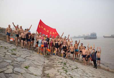 长江救援志愿队部分救援队队员在武汉钢城冬泳基地合影(2015年12月27日摄)。新华社记者金立旺摄