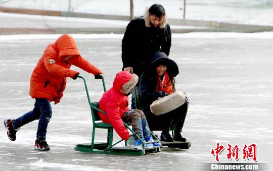 市民不畏严寒冰上嬉戏。 张道正 摄