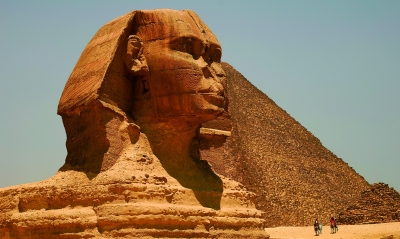 我去游览金字塔时,正值埃及的盛夏,那片被烈日灼烤得快要燃烧似的沙漠,一片金黄,巨大的金字塔和斯芬克斯狮身人面像,如同早已习惯了这炎热,静静地端坐在这片古老的大地上,迎接着来自世界各地、不同肤色的游人。