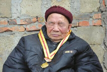 2016年1月16日,阳光和煦。金堂县隆胜镇黄桷桠村公路旁,有间年久失修的老房子,泥土筑起的墙已剥落大半,地面坑洼不平却打扫得很干净。94岁的唐文光坐在院坝里,晒着太阳眯了一觉醒来。
