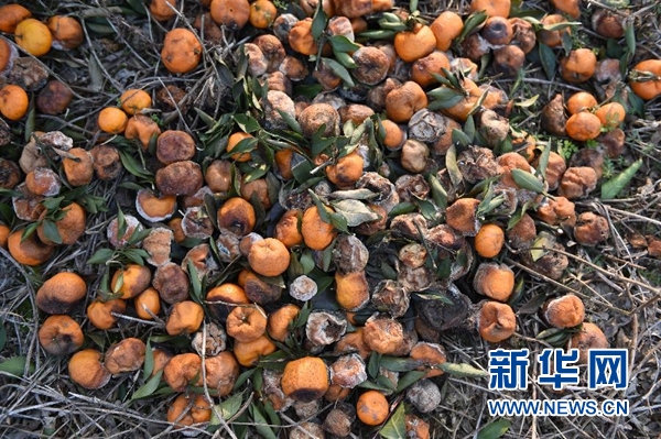 这是广西兴安县界首镇兴田村烂在地上的蜜橘(1月24日摄)。新华社记者 陆波岸 摄