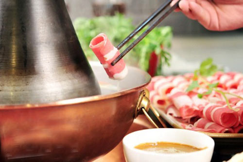 到了民间,虽少了这会唱歌的蝈蝈,可是这喜爱劲儿可没少。打上煤气灶,架上黄铜制的气锅,一斤手切鲜羊肉配上咸淡适中的麻酱,再点上白菜、粉丝、冻豆腐、烤烧饼、糖蒜。在寒冷的冬天,一家子围着一口大热锅,锅里升腾水蒸气给每个人脸上都熏得红扑扑,那可真叫一个赞!