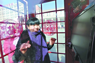 24日是春运第一天,汉口火车站站前广场上,高2米、占地不到1平方米的大红色“春运说吧”小亭,在中国结和传统的窗花装扮下,显得十分温馨。亭子内,有一台显示器,旁边有个话筒,显示器上面有微型摄像头,引来不少旅客在此驻足。有仙桃、天门、黄冈、恩施等省内回家过年的旅客,也有辽宁、山东、河北等省外的旅客,他们中间有返乡的学生、打工者、农民工,还有已在武汉安家、父母远在外地的武汉市民。