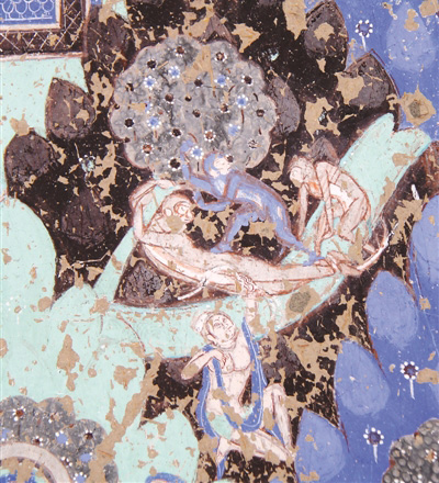 克孜尔石窟壁画《猕猴王舍身救群猴》。