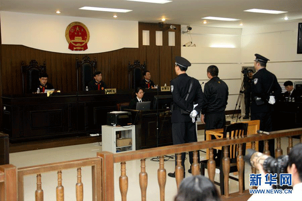 这是陈满故意杀人放火案审理现场(2015年12月29日摄)。 2015年12月29日,浙江省高级人民法院在海南省海口市琼山区人民法院依法公开审理了陈满故意杀人、放火再审案。鉴于案件案情重大,浙江省高院根据有关法律规定将择期宣判。新华社发