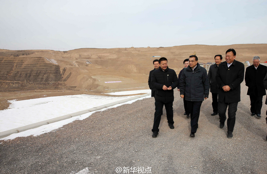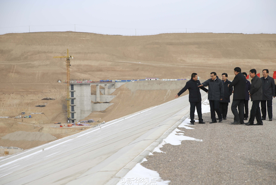 李克强1日冒着零下10度严寒登上宁夏固原市中庄水库大坝,察看城乡饮水安全工程建设情况。总理说,西海固因严重缺水苦甲天下,历史上落在贫困最后面,现在要走在脱贫最前列。要通过建设好重大民生饮水工程,彻底拔掉西海固贫困的根子。(据新华社“新华视点”微博报道)