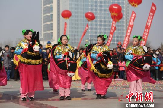 图为活动现场娃娃们表演的社火《跑驴》。 张海雯 摄