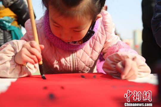 青海各族“娃娃”写春联闹社火体验春节传统习俗