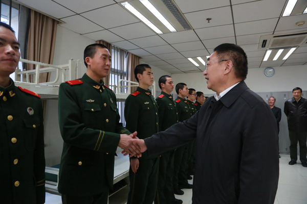 本站讯 猴年新春佳节即将到来之际,2月2日下午,水利部党组书记、部长陈雷一行,亲切看望慰问驻部武警战士、水利部行政审批受理中心和机关后勤干部职工,向大家致以新春的祝福和诚挚的问候。部领导矫勇、田学斌、刘宁、田野、周学文,总工程师汪洪,总规划师张志彤等一同看望慰问。