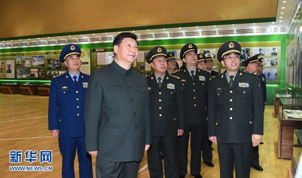 2015年12月25日,中共中央总书记、国家主席、中央军委主席习近平视察解放军报社,代表党中央和中央军委,对解放军报创刊60周年表示热烈的祝贺,向报社全体工作人员和离退休老同志,向全军新闻工作者致以诚挚的问候。这是习近平参观解放军报创刊60周年主题展。新华社记者 李刚 摄