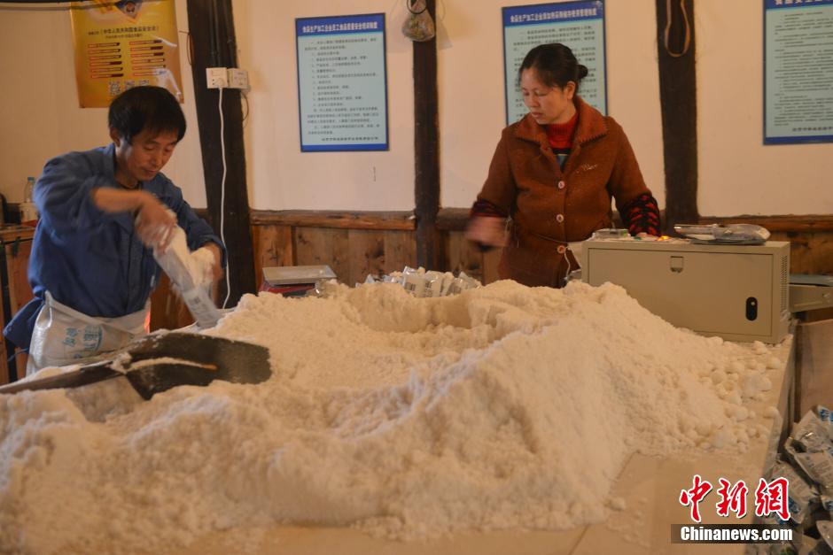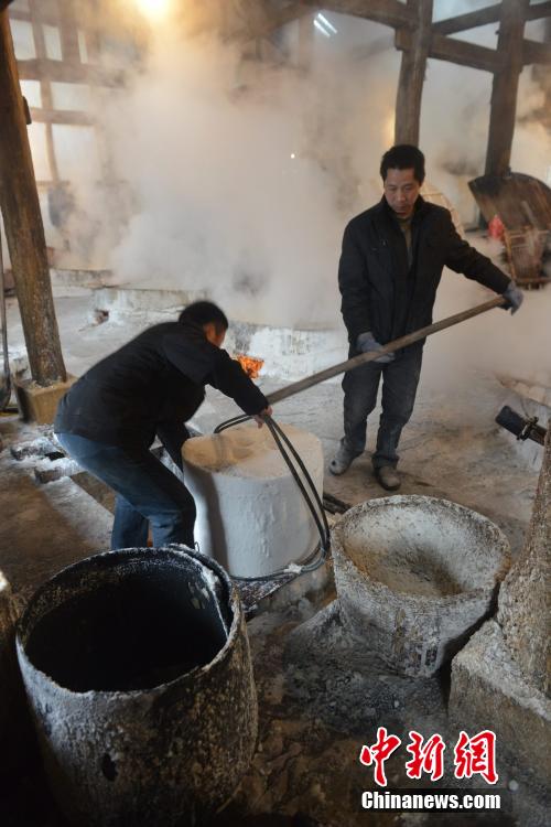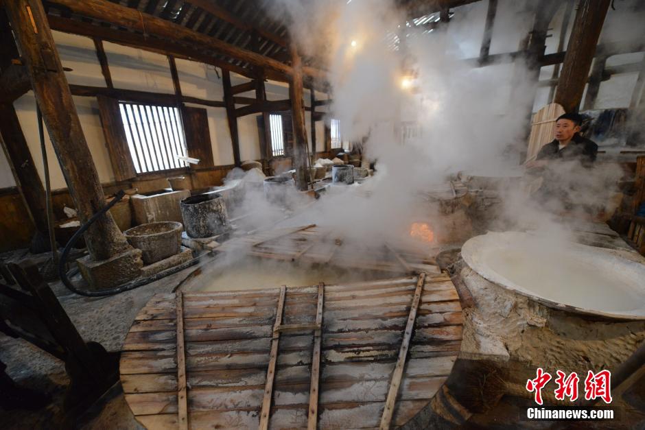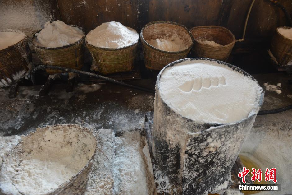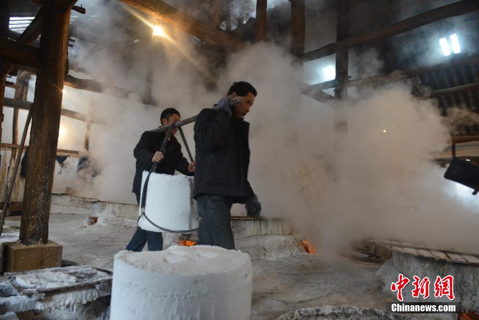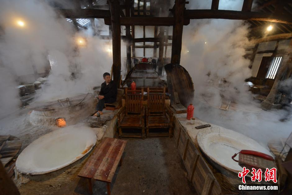 四川自贡,因有着悠久的井盐生产历史而被冠以“千年盐都”的美誉。2000年以前,当地就以打井的方式抽取地下卤水,通过汲卤、输卤到用铁锅进行煎盐,从而制作成成品盐。随着社会发展,工业制盐已经代替了大多数手工生产方式,但在自贡燊海井,至今仍保留着千年的传统手工制盐。张浪 摄