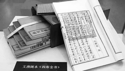 谈到中国历史上规模最大的文化典籍,人们一般会不约而同地想到《四库全书》。1772年,乾隆皇帝颁布敕令编纂《四库全书》。为此,皇家在全国范围内广泛征集各类典籍。朝堂360多位官员学者进入编委会组织编纂,全国遴选3800多位文人学士从事抄写。因丛书分经史子集四部,故名四库;因收录典籍3500多种,7.9万卷,3.6万册,字数8亿,内容涉及此前中国历代著作,故称“全书”。1782年第一部抄写完成,存放于北京故宫文渊阁,便于乾隆随时御览。1783年第二部抄写完成,存放于沈阳故宫文溯阁,便于乾隆回龙兴之地时御览。1784年第三部抄写完成,存放于圆明园文源阁,便于乾隆休假疗养时御览。1785年抄写完成第四部,存放于承德避暑山庄文津阁,便于乾隆消夏避暑时御览。1787年又抄写了三部,御敕存放于镇江金山寺行宫文宗阁、扬州天宁寺行宫文汇阁和杭州圣因寺行宫文澜阁,便于乾隆巡幸江南时御览。