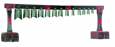 发掘出土的众多陪葬品中,这套编钟造型古朴,纹饰精致,尽管埋藏在地下已经两千多年了,却没有一点伤痕,而且连细小的腐蚀锈片也找不到,13枚编钟从大到小,排列井然有序。