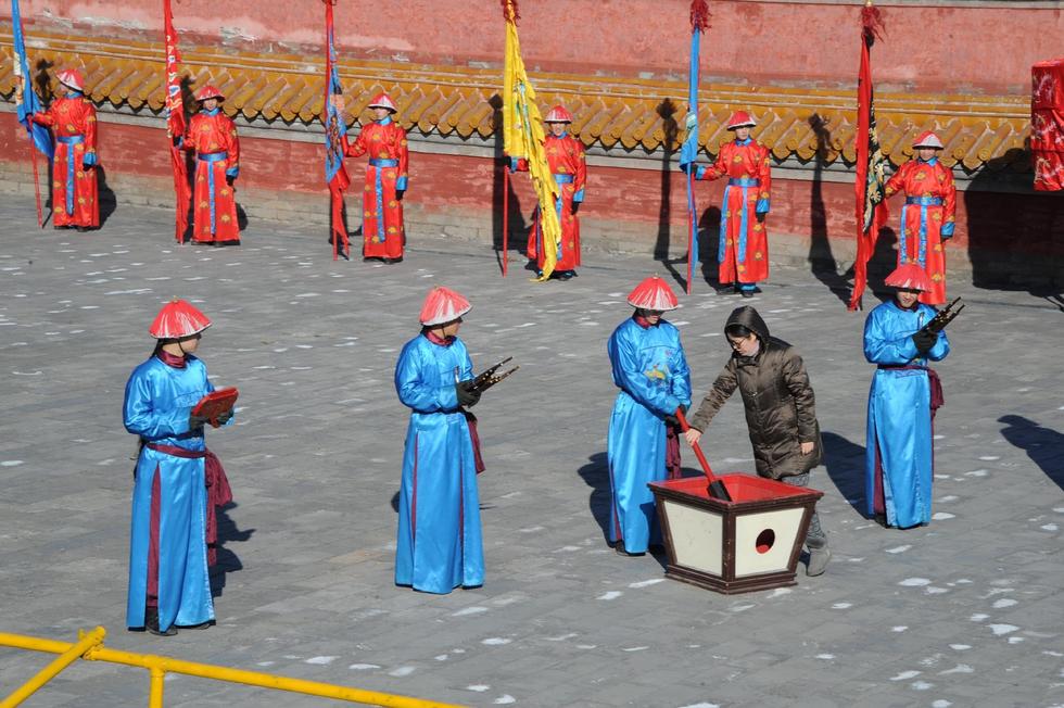 仿清祭地表演是历届地坛庙会的保留节目,按照乾隆年间的祭地仪式精心编排,所用陈设和服饰都是按照史书记载制作,并严格遵照乾隆帝的祭拜程序进行,140余人的表演队伍,集歌、舞、乐三位一体,文武百官、侍卫仪仗等。