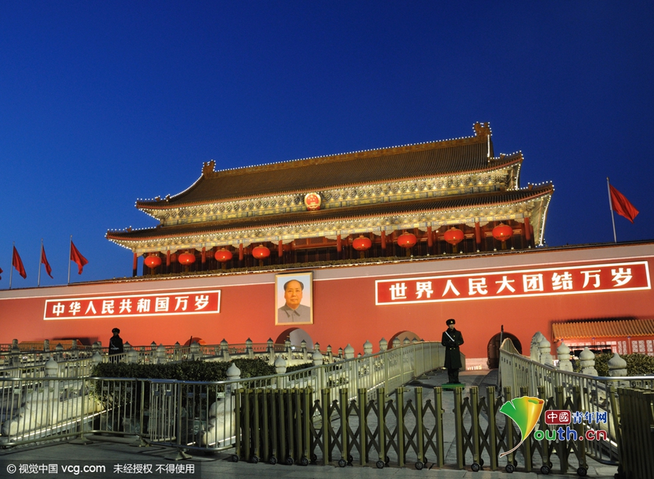 北京春节景观照明开启 天安门长安街夜色璀璨迎猴年