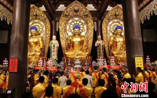 除夕夜三亚南山法师领僧众撞钟祈福(图)