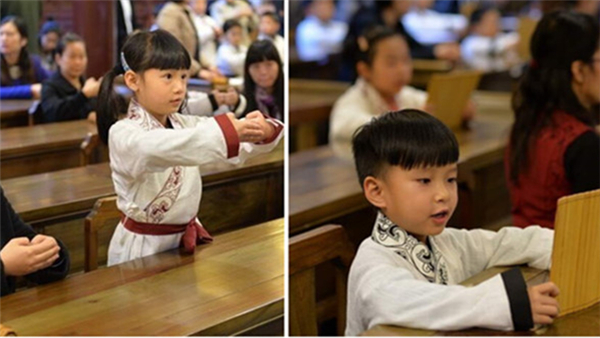 成都学童穿着汉服上国学课