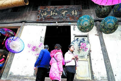 古镇街头的油纸伞铺。本报记者 赵斌艺摄