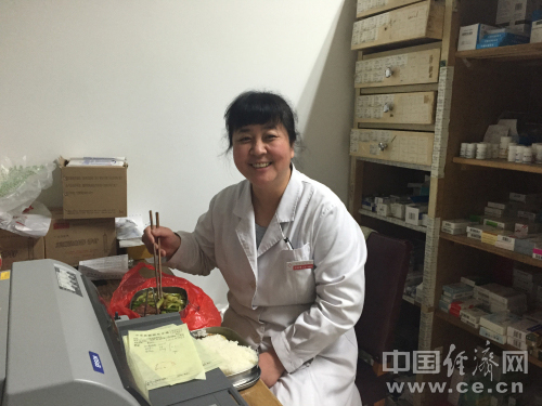 王俊伟医生年三十值班,在为病人开药。中国经济网记者 杨淼摄