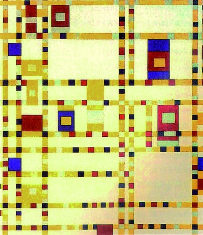 1940年,为躲避战争,蒙德里安来到美国纽约。他的画风也再次发生了变化,代表作品有《百老汇爵士乐》,画面虽仍然保持着他标志性的直线和三原色,却被重新组合演绎出了完全不同以往的欢乐情怀——众多小色块连接成活泼跳跃的线条,交织着灯火辉煌的都市景观,充满轻快的节奏感和流动感。1944年,蒙德里安在纽约去世,享年72岁。