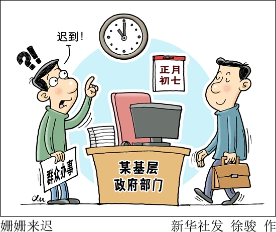 新华社北京2月15日电 题:到岗情况改观大 迟到早退仍不少——节后第一天基层政府部门上班了吗?