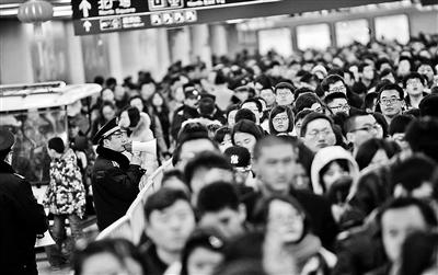 逆着人流,用已经嘶哑的声音向人流喊着“先进站后买票”,并不时回应着身边各种问路和求助,西站城管分局执法一队队长姜振科像在大海中游泳时换气一样,不时淹没在汹涌的人海中,时隐时现,有些漂泊。每年春节后的返程高峰,是执法一队最忙碌的时刻,全员上岗不休息,而这个高峰持续的时间将是整个正月。