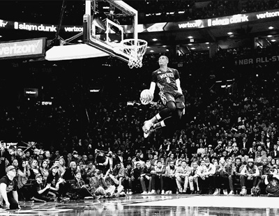 北京时间2月14日,森林狼队球员拉文在NBA(美国男篮职业联赛)扣篮大赛比赛中。