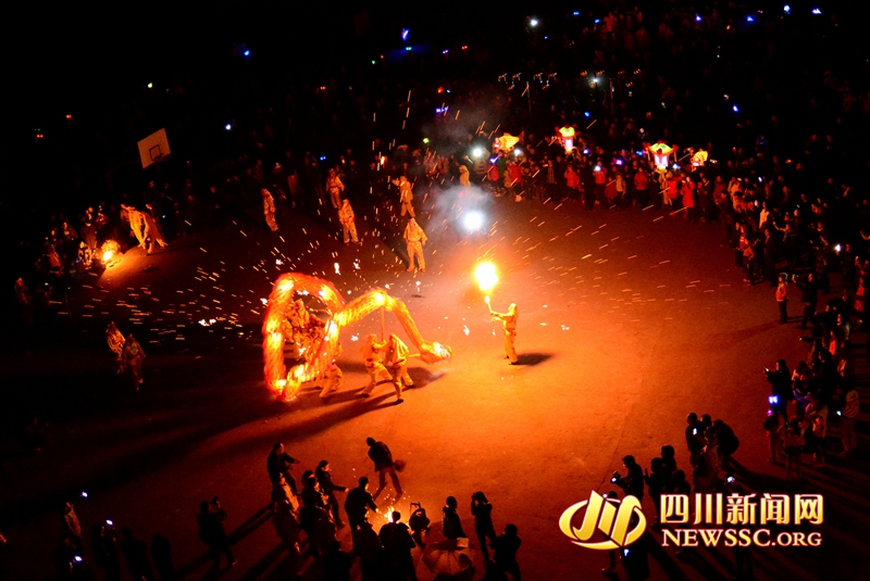 龙,历来都被人们视为吉祥物的象征。据介绍,从上世纪80年代开始,永兴镇每年春节期间都要组织“火龙”表演。每次表演时,鞭炮齐鸣,礼花齐放,由12名当地居民举着长约20米的“火龙”翩翩起舞,“火龙”喷射的火花与五彩的礼花交相辉映,伴随着群众的阵阵热烈掌声,共同祈祷新年物阜民安,风调雨顺。(廖奇琪 记者 龙艳)