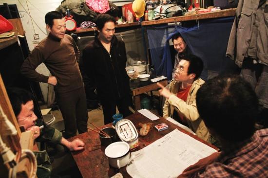 当时,他刚来北京不久,在北大中国社会工作研究中心搞项目,常去北五环外一些建筑工地做探访。有天晚上,李大君匆匆忙忙地赶末班车去,路过一间工棚。工棚的门板缝隙很大,他不经意地瞥了一眼,瞧里边坐了俩人,是他没见过的两个工人。李大君推门进去,认识了老何兄弟俩。